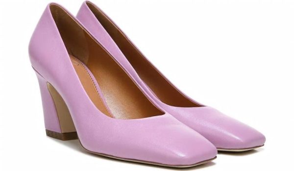 Exude style and confidence in this modern square-toe pump with artistic inspiration.